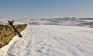 The views from the footpath, across to the Thirlwall Nicks (used to be the 9 Nick of Thirlwall but quarrying took at least one of them out!) and Hadrian's Wall at Walltown are lovely, the hills seem much closer than they are and, with a shining white field of fresh snow, they made a nice picture.